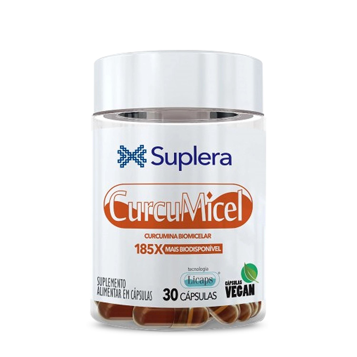 CurcuMicel Suplera é um suplemento de curcumina em estrutura micelar natural, com tecnologia exclusiva e sem a adição de piperina, enriquecido com as vitaminas C e D.